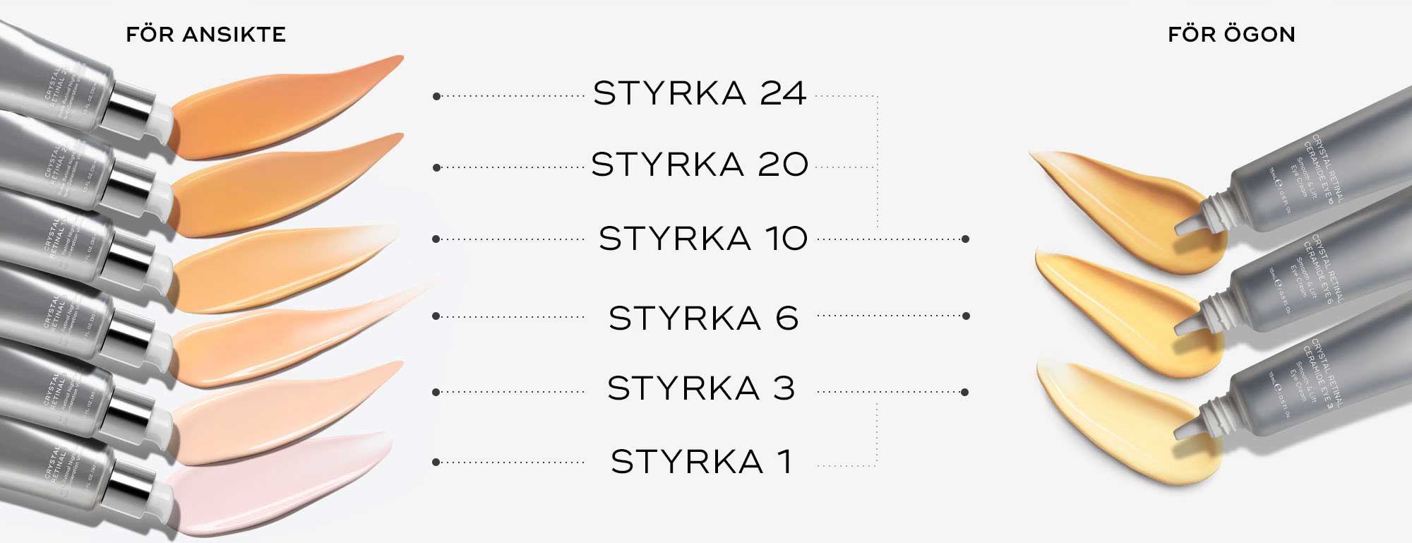 Vi rekommenderar att du börjar med en låg styrka och gradvis vänjer din hud genom att fasa in Crystal Retinal i din rutin.