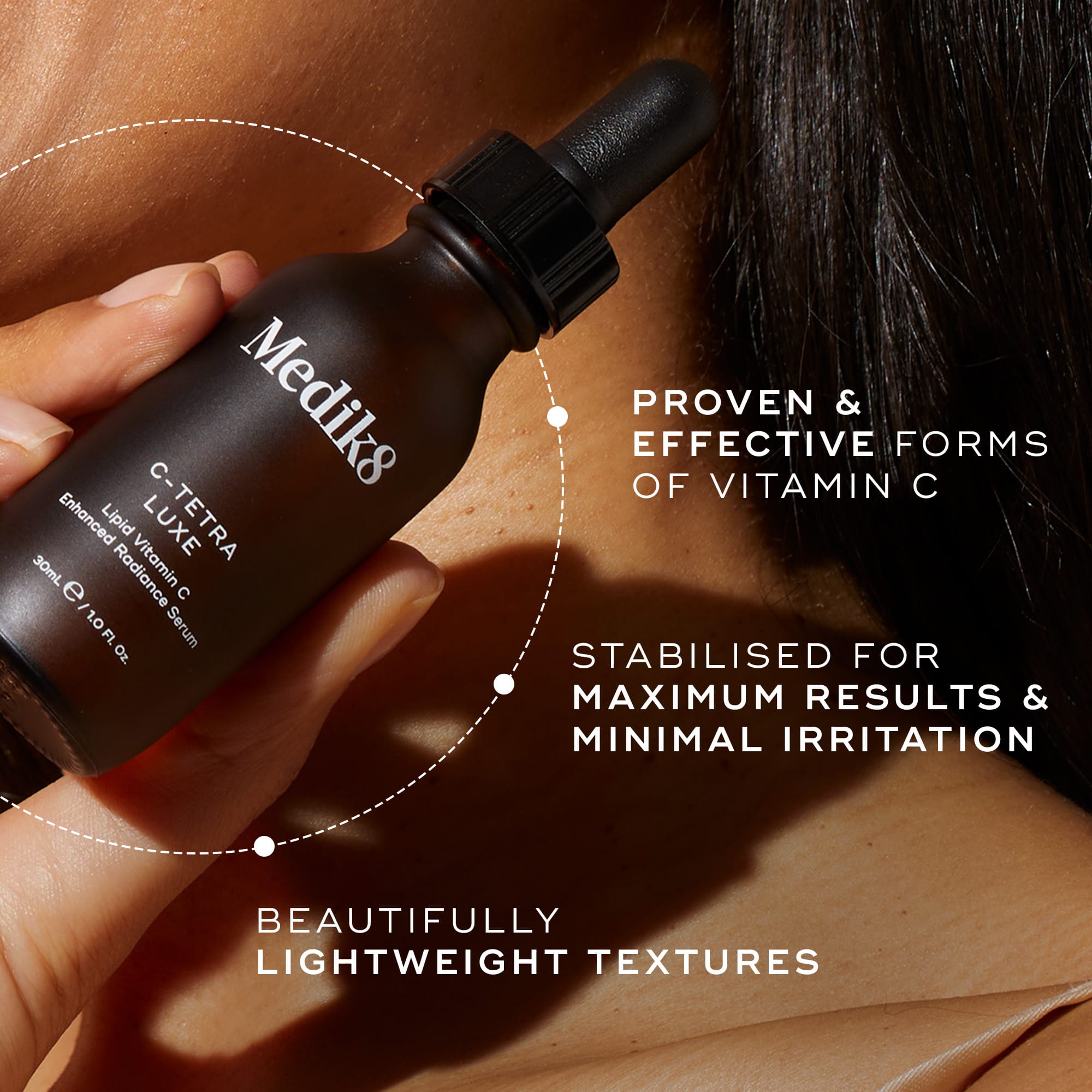Super C Ferulic™: En högpresterande formula utvecklad för att effektivt bekämpa avancerade tecken på solens åldrande.
